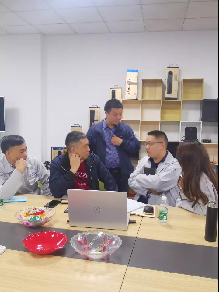 除了部門負責人分享,另一個重要的環節是現場溝通及方案探討,兩個公司的銷售部,PMC,財務,工程,模具等部門分組討論。